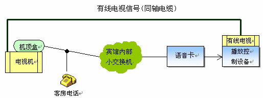 目前,越來越多的星級賓館開通了VOD點播系統(tǒng),從而開展收費節(jié)目服務(wù)。該系統(tǒng)可以利用原有的賓館有線電視網(wǎng)絡(luò)和客房電話線來實現(xiàn),最大限度地利用了原有的設(shè)備,節(jié)省了投資。其系統(tǒng)構(gòu)成如下圖所示: