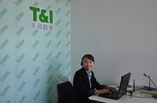 在T-care服務(wù)培訓(xùn)室,微笑天使為客戶提供培訓(xùn)服務(wù)。