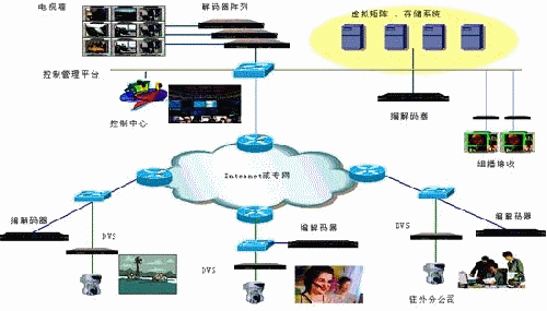 本系統(tǒng)采用數(shù)碼視訊的9000系列H.264、AVS編解碼產(chǎn)品以及EU3000系列DVS產(chǎn)品組建,系統(tǒng)的建立,用戶(hù)不需要固定的IP地址、線(xiàn)路,無(wú)論是身在何地都可以通過(guò)筆記本或是PC參于到視頻通訊當(dāng)中。