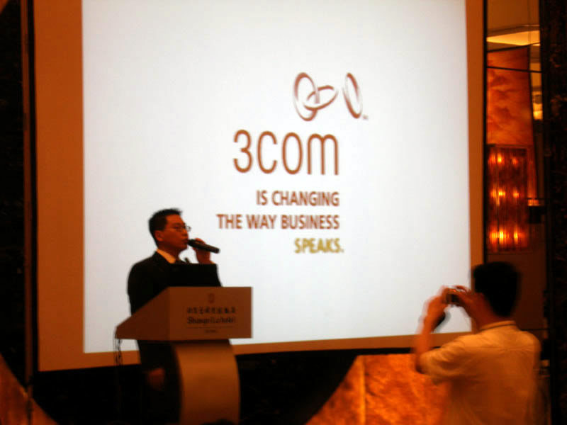 。。2005年8月24日,3Com NBX語(yǔ)音通訊產(chǎn)品推廣會(huì)于北京香格里拉大酒店成功舉辦。圖為3Com中國(guó)地區(qū)高級(jí)市場(chǎng)經(jīng)理朱海翔闡述3Com產(chǎn)品與市場(chǎng)(點(diǎn)擊察看大圖)