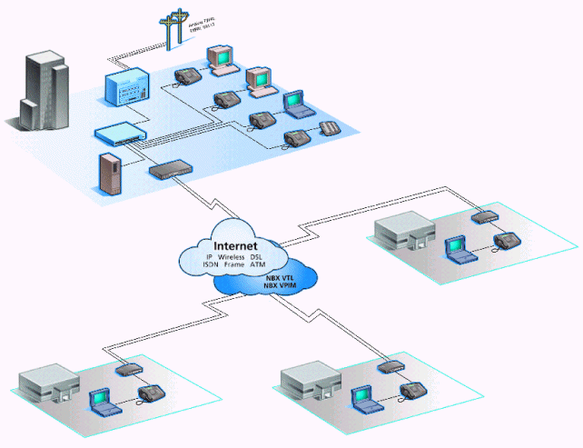 注:企業(yè)架設(shè)NBX通訊系統(tǒng)后,實(shí)現(xiàn)SOHO辦公只需要接入Internet架設(shè)VPN網(wǎng)絡(luò),員工可通過(guò)小區(qū)寬帶接入或ADSL接入即可實(shí)現(xiàn)內(nèi)部通訊就像在企業(yè)內(nèi)部辦公一樣通訊不受任何限制?蛻魜(lái)電時(shí)只需撥打分機(jī)號(hào),無(wú)論員工在任何地點(diǎn)都可接聽(tīng)來(lái)電。企業(yè)可以通過(guò)TCA(通訊助理)軟件給員工發(fā)送公告、組建電話會(huì)議、短信通知等應(yīng)用。