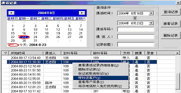 如果有電話打入時,在屏幕的右側會彈出一個對話框,它顯示了當前來電的號碼和通話人(如果在地址簿中沒有記錄則顯示為未知),點擊彈出全部菜單功能,它相當于一個功能強大的通話記事本,用它既可以邊接聽電話邊整理相關通話的文字記錄,又可以錄下通話的全部內容。如果這個電話是您不愿接聽的,也可以將它設置為“免打擾”,這樣,這個號碼以后將存入免打擾名單中,若此號碼再呼入,系統(tǒng)將自動掛斷此呼叫。如果這個電話是您認為的重要客戶打過來的,您也可以將此號碼添加到重要客戶組中,以便您今后接聽或設置電話轉移時能與其它呼入電話相區(qū)分。