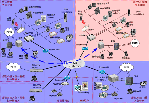 遠端使用 HuaWei-3COM 的 VG 語音網關接入 PSTN 。