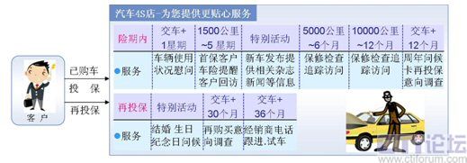 根據(jù)詳細(xì)的客戶或交易信息(如生日、性別、愛好、購(gòu)車記錄、投保記錄等)主動(dòng)與客戶通過(guò)電話、短信等方式,進(jìn)行客戶回訪、投保到期再保提醒、生日祝福、節(jié)日問(wèn)候、再保后的關(guān)懷等服務(wù),與客戶建立良好的長(zhǎng)期關(guān)系。