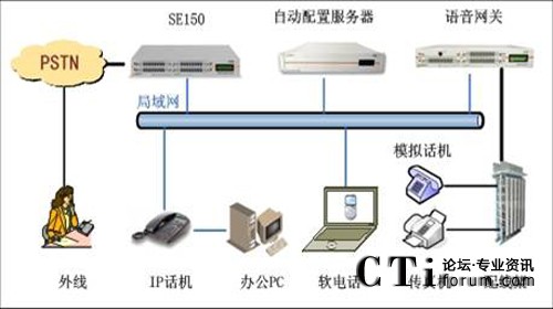 此方案適用于已經(jīng)部署了傳統(tǒng)PBX的企業(yè)。要求企業(yè)部署好數(shù)據(jù)網(wǎng)絡(luò),如果采用模擬終端,則企業(yè)的各個(gè)辦公點(diǎn)需要先將網(wǎng)絡(luò)線(xiàn)路和電話(huà)線(xiàn)路部署到位,同時(shí)企業(yè)原有的PBX要預(yù)留與SE150對(duì)接的接口。