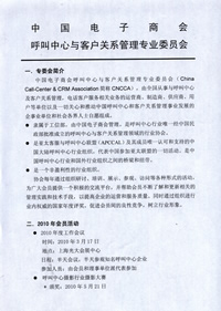 中國(guó)電子商會(huì)呼叫中心與客戶(hù)關(guān)系管理專(zhuān)業(yè)委員會(huì)(China Call-Center & CRM Association簡(jiǎn)稱(chēng)CNCCA),由全國(guó)從事與呼叫中心及客戶(hù)關(guān)系管理,電話客戶(hù)服務(wù)相關(guān)業(yè)務(wù)的運(yùn)營(yíng)商、制造商、供應(yīng)商、用戶(hù)等單位以及一切關(guān)心和推動(dòng)中國(guó)呼叫中心和客戶(hù)關(guān)系管理事業(yè)發(fā)展的企事業(yè)單位和社會(huì)各界人士自愿組成。
