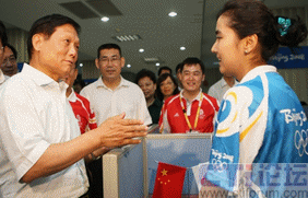 圖一 北京市市委書記、北京奧組委主席劉琪同志奧運期間到奧運呼叫中心慰問來自呼叫中心行業(yè)的志愿者,感謝志愿者來源單位對北京奧運會作出的無私貢獻