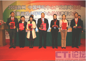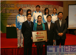 CTI論壇(ctiforum)04月14日消息: 日前,”蘇州 2009中國呼叫中心高峰論壇暨奧運觀眾呼叫中心志愿者表彰大會”在蘇州工業(yè)園區(qū)召開,表彰在奧運期間對奧運呼叫中心作出突出貢獻的十三家志愿者選派單位及先進個人。大會由第二十九屆奧林匹克運動會組織委員會與中國信息化推進聯(lián)盟客戶關(guān)系管理專業(yè)委員會共同主辦,蘇州工業(yè)園區(qū)、CCCS聯(lián)絡中心標準委員會、ICMI客戶管理學院(中國區(qū))共同承辦。