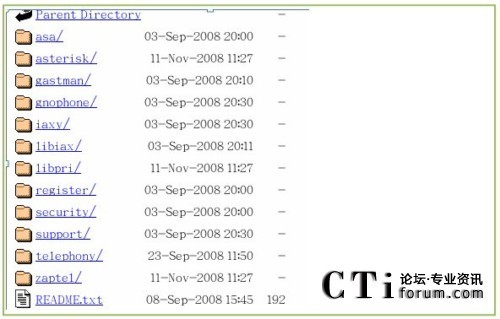 點擊進入,找到zaptel ,libpri,asterisk和asterisk-addons 文件夾,分別點擊進去下載所對應(yīng)版本的包到/usr/src/目錄下,如圖:
