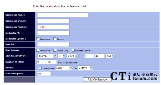 設(shè)定會(huì)議基本信息后,點(diǎn)擊下面的Add Conference button,頁(yè)面如下: