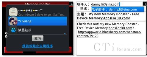 相信很多用戶都發(fā)現(xiàn),手機(jī)的流暢度會隨著應(yīng)用的增多和使用時間的增長,而變得越來越“坑爹”。同電腦一樣,智能手機(jī)在運行過程中也會產(chǎn)生大量的垃圾文件,而這些文件一旦過多,必定對流暢性造成一定影響。這款名為Memory Booster的應(yīng)用除了能夠快速清理黑莓智能手機(jī)中的這些垃圾文件外,還能夠刪除不必要的緩存內(nèi)容,為手機(jī)騰出更多的存儲空間。用戶只需點擊Boost Now,就可一鍵解決所有問題,讓你的手機(jī)重?zé)ㄇ啻。作為一款BBM整合應(yīng)用,我們還可以通過BBM和郵件把它推薦給自己的好友,與他們一同分享。
