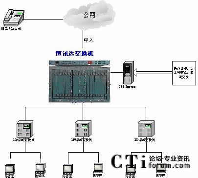 綜合接警平臺(tái)主要由hxd09可編程智能語音交換機(jī)和計(jì)算機(jī)網(wǎng)絡(luò)兩部分組成,交換機(jī)負(fù)責(zé)110、119、122報(bào)警電話的接入與分流及調(diào)度呼出等功能;計(jì)算機(jī)網(wǎng)絡(luò)則完成110、119、122報(bào)警信息的顯示、數(shù)據(jù)儲(chǔ)存、統(tǒng)計(jì)及信息查詢、發(fā)布功能。