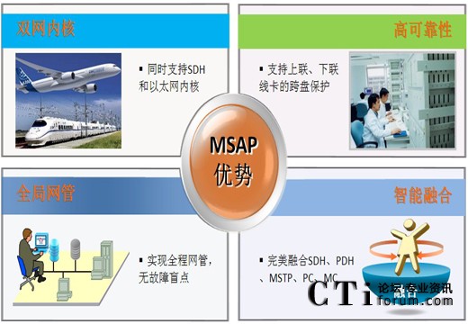 同時,MSAP除了對傳統(tǒng)的TDM業(yè)務(wù)有很好的支撐之外,還利用其新增的IP內(nèi)核有效處理日益增多的純IP業(yè)務(wù)。