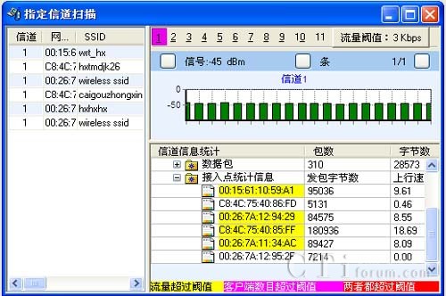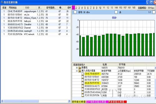 支持設備被動狀態(tài)下掃描802.11a/b/g/n所有信道,也可選擇信道進行掃描。統(tǒng)計匯總AP、STA、AdHoc等設備的數(shù)量,統(tǒng)計網(wǎng)絡中SSID網(wǎng)絡數(shù)量,能提供信道的信號強度、噪聲、信噪比、干擾參數(shù)指標等信息。