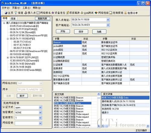 連接診斷功能實時分析顯示接入點同客戶端之間連接步驟的完成狀況,為分析網(wǎng)絡接入問題提供支持。