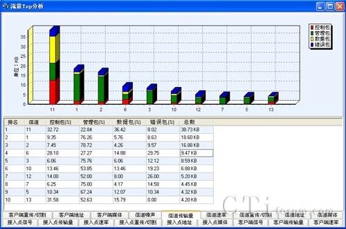 該系統(tǒng)能夠向用戶提供豐富的802.11 a/b/g/n無線參數(shù),包括信號強度覆蓋參數(shù),同頻干擾及鄰頻干擾參數(shù),管理幀、控制幀、數(shù)據(jù)幀及各種無線幀傳輸速率的統(tǒng)計參數(shù)等;系統(tǒng)能基于以上各類統(tǒng)計參數(shù),并通過實時進行各種數(shù)據(jù)業(yè)務測試,獲取網(wǎng)絡的數(shù)據(jù)業(yè)務參數(shù)指標,分析WLAN網(wǎng)絡質(zhì)量問題。