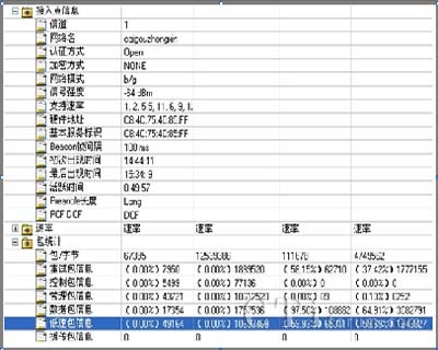 主要測試指標有:信號強度,噪聲,信噪比,載干比,支持速率,MAC地址,認證及加密方式,Beacon幀間隔,Preamble長度類型,PCF/DCF,SSID,占用信道等。