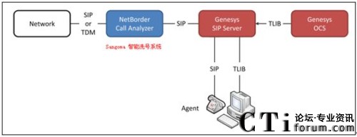 呼叫中心的蓬勃發(fā)展帶動了呼叫中心廠家投入巨資開發(fā)呼叫中心最核心的功能,例如拓展呼叫中心的接入,座席的管理,洗號系統(tǒng)。除了支持Asterisk,F(xiàn)reeswitch平臺的高并發(fā)A116 16E1做為高并發(fā)呼叫中心以外,Sangoma早在2004 年就開始和世界知名呼叫中心廠家Genesys 合作,開發(fā)了呼叫中心的洗號系統(tǒng),遠端座席管理,PSTN 接入等強大的工具,從而提高了大型呼叫中心的接通率和座席管理的靈活性。Sangoma 通過genesys 兼容性測試,完全兼容Genesys 呼叫中心平臺。NetBorder 系統(tǒng)架構如下: