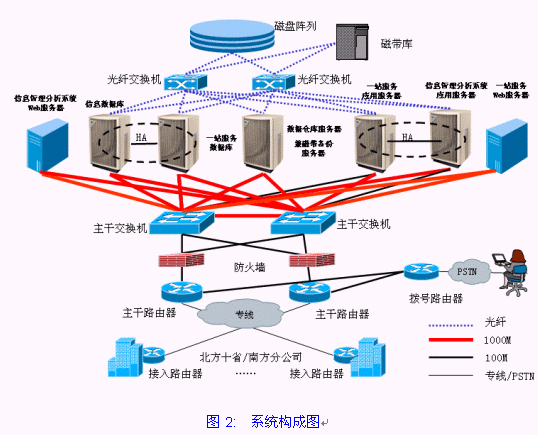 項(xiàng)目主要由大客戶信息管理分析系統(tǒng)與大客戶一站服務(wù)系統(tǒng)構(gòu)成。其中,大客戶信息管理分析系統(tǒng)主要由數(shù)據(jù)倉(cāng)庫(kù)服務(wù)器、應(yīng)用服務(wù)器、Web服務(wù)器等平臺(tái)構(gòu)成;大客戶一站服務(wù)系統(tǒng)主要由數(shù)據(jù)庫(kù)服務(wù)器、應(yīng)用服務(wù)器、Web服務(wù)器等平臺(tái)構(gòu)成。