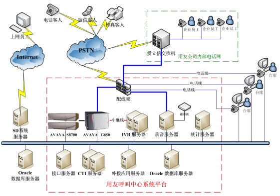 用友的客戶服務(wù)指揮調(diào)度中心采用的是HOLLYCRM(合力金橋軟件)公司完全自主知識產(chǎn)權(quán)的呼叫中心解決方案 - HollyC6呼叫中心解決方案中的旗艦產(chǎn)品,如:HollyReport(統(tǒng)計(jì)報表工具)、HollyDM(主動營銷系統(tǒng))、HollyIVR(交互式語音應(yīng)答系統(tǒng))、 HollyContact(CTI中間件)等,搭建了一個為用友用戶進(jìn)行軟件應(yīng)用技術(shù)咨詢、軟件產(chǎn)品咨詢、軟件購買咨詢、故障受理、服務(wù)投訴、滿意度調(diào)查、客戶關(guān)懷等內(nèi)容的支撐系統(tǒng)。 通過建立呼叫中心,用友公司樹立起了軟件行業(yè)服務(wù)有形化、標(biāo)準(zhǔn)化、產(chǎn)品化的標(biāo)桿,加強(qiáng)了其軟件服務(wù)的競爭力。新建成的呼叫中心于2005年12月8日正式投入運(yùn)營,用友近40萬用戶只需撥打4006600588,就可享受來自其全方位的服務(wù)。