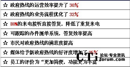 在我們的采訪中,深圳市政府認為,建設法治政府、廉潔政府、效率政府、有限政府、陽光政府和責任政府,前提是政府必須完成轉型。政府行政體制改革的最終目標是要達到行政權力規(guī)范,服務型的一個政府。因而,為市民提供專業(yè)權威和有效的政府熱線服務成為題中之意。通過深圳市12345政府熱線的成功應用,我們可以體會到呼叫中心應用于政府及公用事業(yè)部門后,受益的不僅是千百萬公眾,更重要的是加速了在社會急劇變革時代政府職能的現(xiàn)代化轉型。