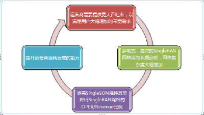 SingleSON是運(yùn)營(yíng)商提高多制式、多層次SingleRAN網(wǎng)絡(luò)OPEX效率的必需方案,使運(yùn)營(yíng)商能在滿足用戶日益增加的吞吐率需求的同時(shí),自身能夠長(zhǎng)期發(fā)展(如下圖所示)。