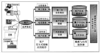 保證客戶信息的充分共享,滿足銀行發(fā)展的需要,最重要的是要建立完整、統(tǒng)一的客戶服務(wù)平臺,這也是銀行建設(shè)客戶關(guān)系管理系統(tǒng)的基礎(chǔ),完善的、適用于銀行業(yè)的客戶服務(wù)平臺應(yīng)當包括三個部分: