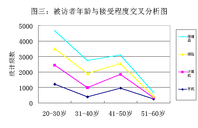 調(diào) 查 表 明 : 收 入 在 600 元 到 1500 元 之 間 的 階 層 對 電 話 購 物 的 接 受 程 度 最 高 ; 而 20 歲 到 30 歲 這 個 年 齡 段 的 人 對 電 話 購 物 的 接 受 程 度 最 高 。