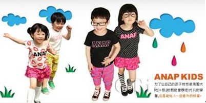 除了衣服質(zhì)感舒適,ANAP KIDS以款式流行、設(shè)計(jì)CUTE的市場(chǎng)定位也贏得 不少青睞者的追捧。更有小物件、配飾等多類(lèi)商品,滿足了喜歡時(shí)尚、裝扮的母親們想讓自己孩子穿得和其他人與眾不同衣服的需求。繼承了ANAP傳統(tǒng)的ANAP KIDS是一個(gè)非常“奔放”、“充滿活力”的品牌,致力于協(xié)助父母給予最可愛(ài)的他(她)最安全、最舒適的呵護(hù),將潮流、關(guān)愛(ài)、成長(zhǎng)的生活觀念傳遞到每個(gè)家庭,讓所有3-6歲兒童共享同一份快樂(lè)。