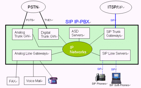 MOSA的SIP IP-PBX是一個(gè)完整的商用交換機(jī)系統(tǒng),能提供企業(yè)完整的通信服務(wù),因應(yīng)各種不同接口的連結(jié)需求,例如公眾電信系統(tǒng)(PSTN)、SIP服務(wù)商、傳真機(jī)、電話機(jī)、語音信箱、SIP IP Phone、SIP Soft-phone、Wifi-Phone以及各種SIP終端設(shè)備等等,MOSA的SIP IP-PBX提供模塊化的接口連接設(shè)備,每一種接口連接設(shè)備均配備有以太網(wǎng)絡(luò)接口,可以透過IP網(wǎng)絡(luò)相互連結(jié),使得各分公司之間通信零距離。MOSA SIP IP-PBX除了解決基本的接口連接外,也提供各式各樣的應(yīng)用服務(wù)服務(wù)器(Application Service Devices),增進(jìn)整體系統(tǒng)的功能,譬如:網(wǎng)絡(luò)型電話會(huì)議,網(wǎng)絡(luò)型廣播,移動(dòng)辦公功能等。