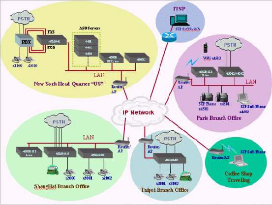 MOSA 4600 IP-PBX特別合適有跨國(guó)或者多個(gè)分公司的企業(yè),每個(gè)分公司可以依其喜好選擇CPE設(shè)備,例如傳統(tǒng)電話機(jī)或者新一代的IP Pone,再透過網(wǎng)絡(luò)的連結(jié),將不同分公司的交換機(jī)整合成一個(gè)單一的交換機(jī),使用者的撥號(hào)方式和傳統(tǒng)的交換機(jī)一樣相當(dāng)方便。例如分公司之間的同仁互撥電話,不論是在同一個(gè)辦公室或者不同國(guó)家,只需要拿起電話直撥對(duì)方的分機(jī)號(hào)碼即可。