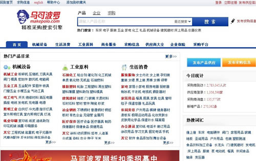馬可波羅網隸屬北京搜斗士信息技術有限公司,成立于2006年,是全球最大的精確采購搜索引擎。馬可波羅按照格式化標準研發(fā)的多維精準搜索系統(tǒng),首創(chuàng)電子商務精確廣告營銷模式(B2B競價排名),僅用了不到5年時間,即在B2B電子商務精準采購搜索領域做到行業(yè)第一。