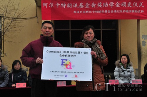 CTI論壇(ctiforum)3月6日消息(記者 浩宇):近日,法國阿爾卡特朗訊基金會(Alcatel-Lucent Foundation)與美國非營利組織世界教育(World Education)在北京市大興區(qū)農(nóng)民工子弟學(xué)!埡W(xué)校聯(lián)合舉辦公益助學(xué)活動(dòng),來自阿爾卡特朗訊中國旗艦企業(yè)——上海貝爾及世界教育的志愿者為45名貧困生、72名成績優(yōu)秀學(xué)生、244名成績進(jìn)步獎(jiǎng)獲得者共計(jì)361人發(fā)放獎(jiǎng)助學(xué)金和獎(jiǎng)狀。此次活動(dòng)是ConnectEd“科技連結(jié)世界”項(xiàng)目協(xié)助流動(dòng)青少年“透過科技擁抱世界”系列公益活動(dòng)的重要一站,ConnectEd “科技連結(jié)世界”項(xiàng)目由阿爾卡特朗訊基金會(Alcatel-Lucent Foundation)與世界教育(World Education)共同在全球推動(dòng)。作為志愿者之一,上海貝爾執(zhí)行副總裁、阿爾卡特朗訊中國區(qū)產(chǎn)品與研發(fā)負(fù)責(zé)人莊靖博士參與了此次活動(dòng),并為阿爾卡特朗訊ConnectEd項(xiàng)目合作校揭牌。雙方還在北京市昌平區(qū)新源學(xué)校舉行了公益助學(xué)活動(dòng),為45名貧困生、39名成績優(yōu)秀學(xué)生、52名成績進(jìn)步獎(jiǎng)獲得者共計(jì)136人發(fā)放獎(jiǎng)助學(xué)金。