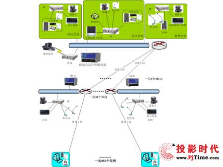 武漢鐵路局下屬31個站段,站段下面共下屬452個車間,要求實(shí)現(xiàn)鐵路局到各個站段以及各個站段下面的各個車間的電視電話會議,能開啟同時(shí)500個點(diǎn)的電視電話會議和各個站段可以自行召開與自己下屬車間的電視電話會議。