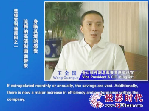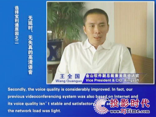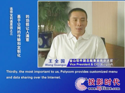 寶利通公司中國區(qū)總經(jīng)理李鋼先生說:“此次寶利通全球領(lǐng)先的高清視頻會(huì)議系統(tǒng)得到金山軟件的認(rèn)可,為我們的極致高清方案帶來又一個(gè)經(jīng)典案例。作為金山軟件企業(yè)信息化進(jìn)程的重要一環(huán),高清方案成為先期實(shí)施的項(xiàng)目之一。這充分反映了本土高科技企業(yè)對(duì)構(gòu)建方便、快捷、高質(zhì)量統(tǒng)一協(xié)作平臺(tái)所給予的足夠重視,我們深表欽佩。真誠期待通過我們的優(yōu)質(zhì)服務(wù)和成熟的解決方案,讓更多客戶體會(huì)到協(xié)作通信所帶來的成本效益優(yōu)勢和工作便利!