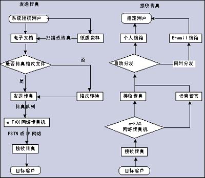 e-FAX網(wǎng)絡(luò)傳真系統(tǒng)流程圖