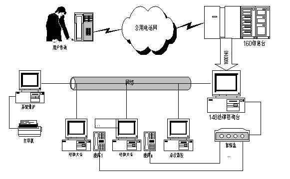 148法律咨詢臺是司法部門為廣大群眾提供的一項法律電話咨詢服務。148法律咨詢系統(tǒng)利用先進的計算機電話語音系統(tǒng)集成技術,實現148熱線電話在話務員處理座席上的排隊,使打入148熱線的用戶獲得最快、最好的服務。系統(tǒng)內置自動語音服務模塊,使148法律咨詢系統(tǒng)同時具有自動語音服務和人工座席服務。