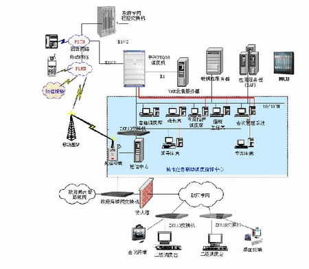 下圖是一個城市應(yīng)急聯(lián)動中心具體組網(wǎng)拓撲:
