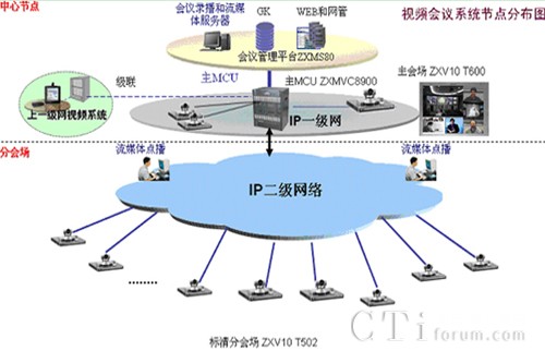 為此,中興通訊選擇了ZXMVC8900基于電信級交換機(jī)架構(gòu)的MCU,而會場終端根據(jù)樂山地稅局的要求,我們分別采用ZXV10 T600 高清視頻終端,ZXV10 T502標(biāo)清終端。全兼容智能視訊服務(wù)器ZXMVC8900采用電信交換機(jī)架構(gòu)設(shè)計(jì),全面支持ITU-T H.323、H.320協(xié)議,可通過不同網(wǎng)絡(luò)(IP、ISDN、DDN、SDH、ATM、衛(wèi)星等)接入用戶終端,并組織召開視頻會議,具有全兼容各種網(wǎng)絡(luò)、支持DVD級高清會議、支持H.264編解碼協(xié)議、H.460防火墻穿越、H.235加密、H.239雙視頻流、T.140短消息橫幅、終端主叫呼集等先進(jìn)技術(shù),最高支持8M帶寬和4CIF圖像分辨率,為用戶提供DVD級的高清晰會議體驗(yàn)。采用單插板設(shè)計(jì),在將來需求增加的時候可以通過增加板卡最大擴(kuò)展至192路,充分保護(hù)用戶投資。ZXV10 T600是中興通訊推出的新一代分體式雙模高清視頻會議終端,支持1080P,720P高清編解碼和8M會議帶寬;支持H.320和H.323雙協(xié)議、藍(lán)牙技術(shù)、H.460防火墻穿越、H.235加密、H.239雙視頻流、T.140短消息橫幅、終端主叫呼集等最新技術(shù)。