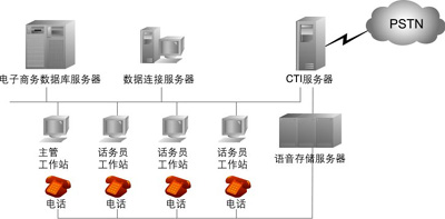 CTI服務(wù)器是一臺與交換機相聯(lián)、通常內(nèi)插CTI板卡的計算機,它通過接收來自交換機的事件/狀態(tài)消息和向交換機發(fā)送命令,實現(xiàn)計算機對整個呼叫中心的全面管理。同時,CTI服務(wù)器屏蔽了交換機與計算機之間復(fù)雜的通信協(xié)議,向上提供統(tǒng)一的編程接口,使開發(fā)人員能方便地開發(fā)呼叫中心的各類應(yīng)用。CTI服務(wù)器一般由電話服務(wù)單元、安全數(shù)據(jù)庫和電話服務(wù)庫等組成,實現(xiàn)同步語音與數(shù)據(jù)的傳送、協(xié)調(diào)語音與數(shù)據(jù)的轉(zhuǎn)移、智能路由等功能。
