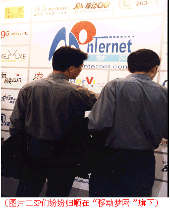 2001年12月20日至21日,中國移動在北京召開“移動夢網(wǎng)”行業(yè)應(yīng)用客戶大會。在這個被中國移動稱之為“全面啟動行業(yè)應(yīng)用客戶市場”的大會上,中國移動意味深長地宣稱:“‘移動夢網(wǎng)’行業(yè)應(yīng)用,將立足移動互聯(lián),以‘共贏’為目標(biāo),通過誠信合作,向行業(yè)客戶提供‘一攬子’信息化解決方案!