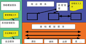 如下圖所示,NGOSS系統(tǒng)由松散耦合的商業(yè)服務組件和框架服務集合而成,商業(yè)服務是依靠執(zhí)行框架服務組件集合來支持的,以達到“即插即用”的要求。各組件的接口采用合約表示,與具體的技術實現無關。
