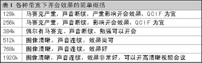 表1各種帶寬下開(kāi)會(huì)效果的簡(jiǎn)單概括