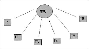 就H.323來(lái)講,企業(yè)存在ADSL、電信專線、衛(wèi)星網(wǎng)絡(luò)等多種選擇。H.323基于IP網(wǎng)絡(luò),IP網(wǎng)絡(luò)雖然是總線型的網(wǎng)絡(luò),但從H.323視頻會(huì)議系統(tǒng)組網(wǎng)來(lái)說(shuō),依舊同H.320視頻會(huì)議系統(tǒng)一樣,是星型網(wǎng)絡(luò),如圖所示,所有的終端數(shù)據(jù)都匯集到MCU處。這樣對(duì)視頻會(huì)議系統(tǒng)組網(wǎng)就提出了要求,如果MCU以下共有6個(gè)終端,每個(gè)中端以B的帶寬開(kāi)會(huì),那么各個(gè)終端處的帶寬要求為B,MCU處的帶寬要求就為6B。