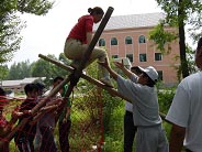 2、相信伙伴、勤于溝通。這次培訓(xùn)的所有項目,都是集體項目。這就要求我們必須相信伙伴,互相協(xié)作。信任來自溝通,信任來自了解。在一天的培訓(xùn)當中,我們有言語上的溝通,有行動上的幫助,有精神上的激勵。我們體會到幫助人和被人幫助是同樣的快樂。我信任我的伙伴們,也相信伙伴也同樣信任我。