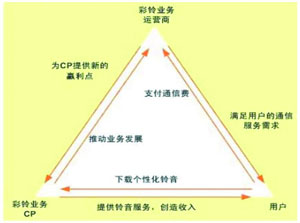 如今,韓國的彩鈴業(yè)務已遍地開花,超過50%的手機用戶在使用彩鈴服務,運營商因此每月能獲得1500萬美元的收益。小彩鈴喚來了大市場。個人用戶無需購買昂貴的終端就可通過彩鈴業(yè)務向外界傳遞個性和情感。商業(yè)用戶將回鈴音設置成廣告/宣傳語,使客戶在與企業(yè)員工交流的同時接收企業(yè)的相關信息,例如企業(yè)文化、產品、銷售信息等,直接或間接地增加了企業(yè)的市場機會。彩鈴業(yè)務為運營商帶來了直接的經濟收益,也帶來了特征用戶群,在語音增值業(yè)務中實現(xiàn)了產業(yè)鏈合作。同時,運營商通過對特征用戶群的研究分析發(fā)現(xiàn)了未來商機,并通過在語音增值業(yè)務產業(yè)鏈中引入ICP/ISP達到了資源的有效利用。