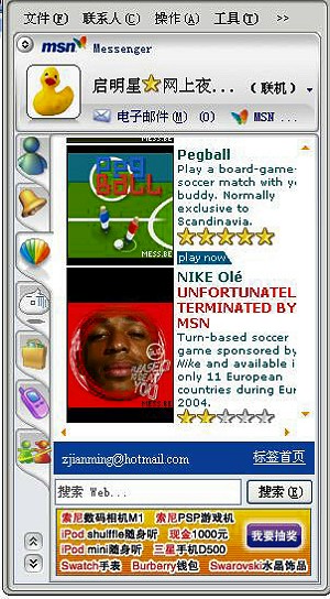 3) 拼接代替加強(qiáng),F(xiàn)有應(yīng)用的簡單決定了IM軟件本身的簡單,因此IM本身變得不受關(guān)注,廠商所作的大多是功能拼接,例如MSN加強(qiáng)聯(lián)網(wǎng)游戲,QQ傍上移動。甚至可以認(rèn)為,IM本身已經(jīng)被置于次要位置。