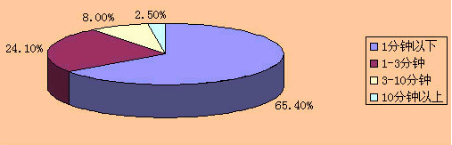 “彩話”業(yè)務主要應用是主叫方為了通話中的和諧溝通而設(shè)置的,因此它與通話時長具有正相關(guān)性,一般短暫的工作式或通知式的通話無須主叫方設(shè)置背景音效。根據(jù)信息產(chǎn)業(yè)部提供的《電信資費聽證會資料》,國家統(tǒng)計局對全國24個大、中、小城市電話用戶通話時長進行了調(diào)查,調(diào)查結(jié)果見圖1所示。