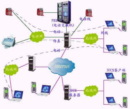 3UCS秉承便捷溝通、高效辦公之理念,將企業(yè)語音通訊、數(shù)字通訊整合在同一通訊線上,將電話交換機功能延伸至IP網(wǎng)絡(luò),電話與傳真線路共享,有效利用線路資源,無縫連接三個網(wǎng)絡(luò)(電話網(wǎng)、局域網(wǎng)、因特網(wǎng)),將電話交換機、傳真服務(wù)、消息等功能集于一身, 利用現(xiàn)有的局域網(wǎng)、因特網(wǎng)接打電話,收發(fā)傳真。