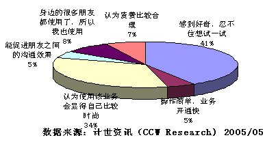 與此同時,有35.3%的用戶表示不會長期使用彩鈴。這是因為彩鈴對用戶來說還只是可有可無的功能,只有在內容上不斷創(chuàng)新,才能保持對用戶的長久吸引力,這也是用戶對個性化和新穎化的需求。目前,運營商向集團客戶推薦的集團彩鈴,可以將企業(yè)旗下員工的彩鈴改成由公司統(tǒng)一制作的宣傳彩鈴。集團彩鈴將手機鈴聲變成宣傳企業(yè)形象的平臺,對提升公司形象自然有一定幫助。但計世資訊(CCW Research)認為:如果使用不當,這項業(yè)務的效果將大打折扣。